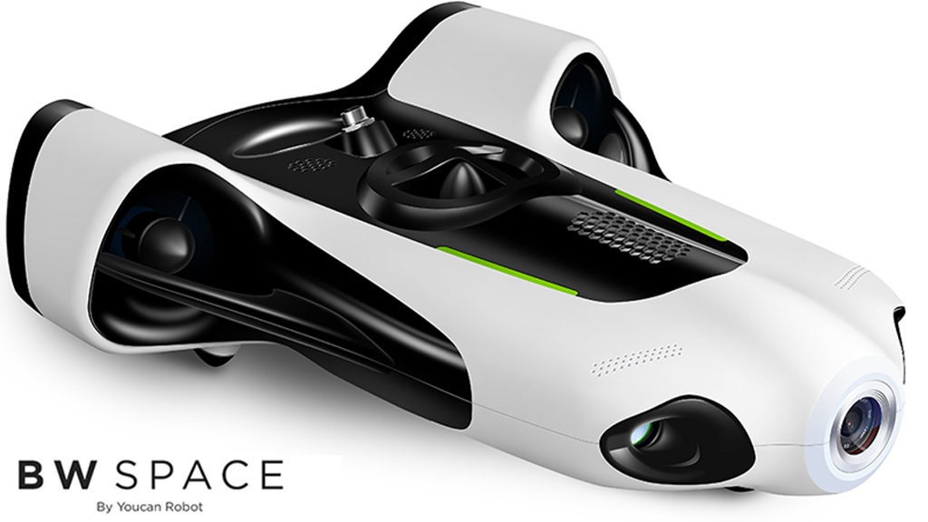 BW-Space's underwater submarine rover instantly transmits live-streaming video from depths up too 100 meters using its WiFi repeater and connected tether.