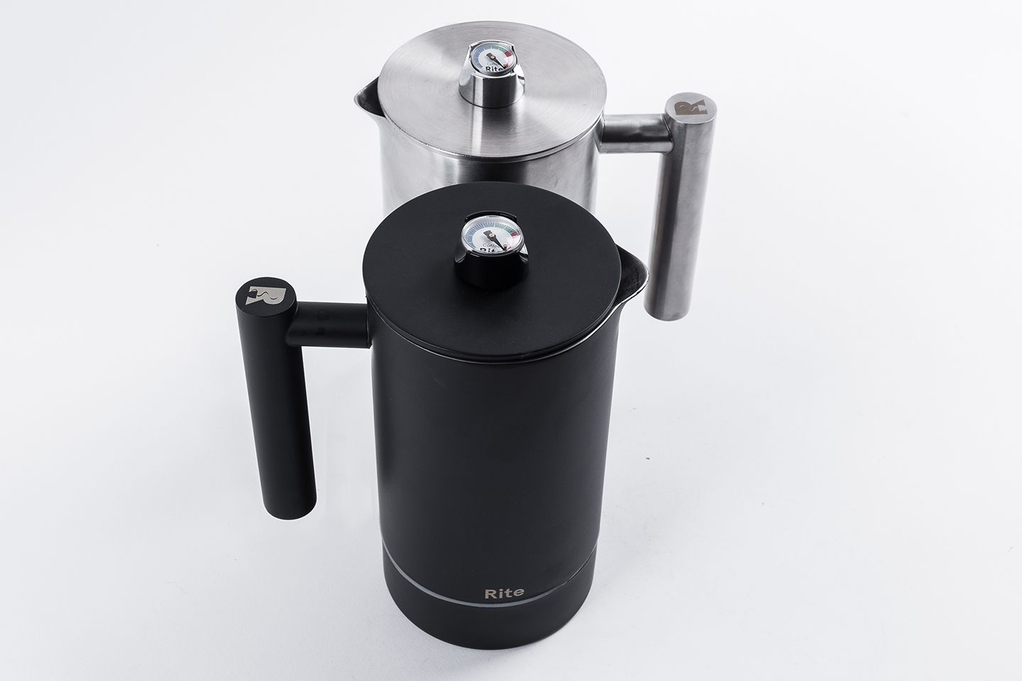 The double wall construction keeps your coffee hot for up to two hours. Hang out with loved ones and enjoy hot coffee for much longer than a standard glass French Press. No more need for reheating your coffee when your coffee stays hot with the Rite Press.