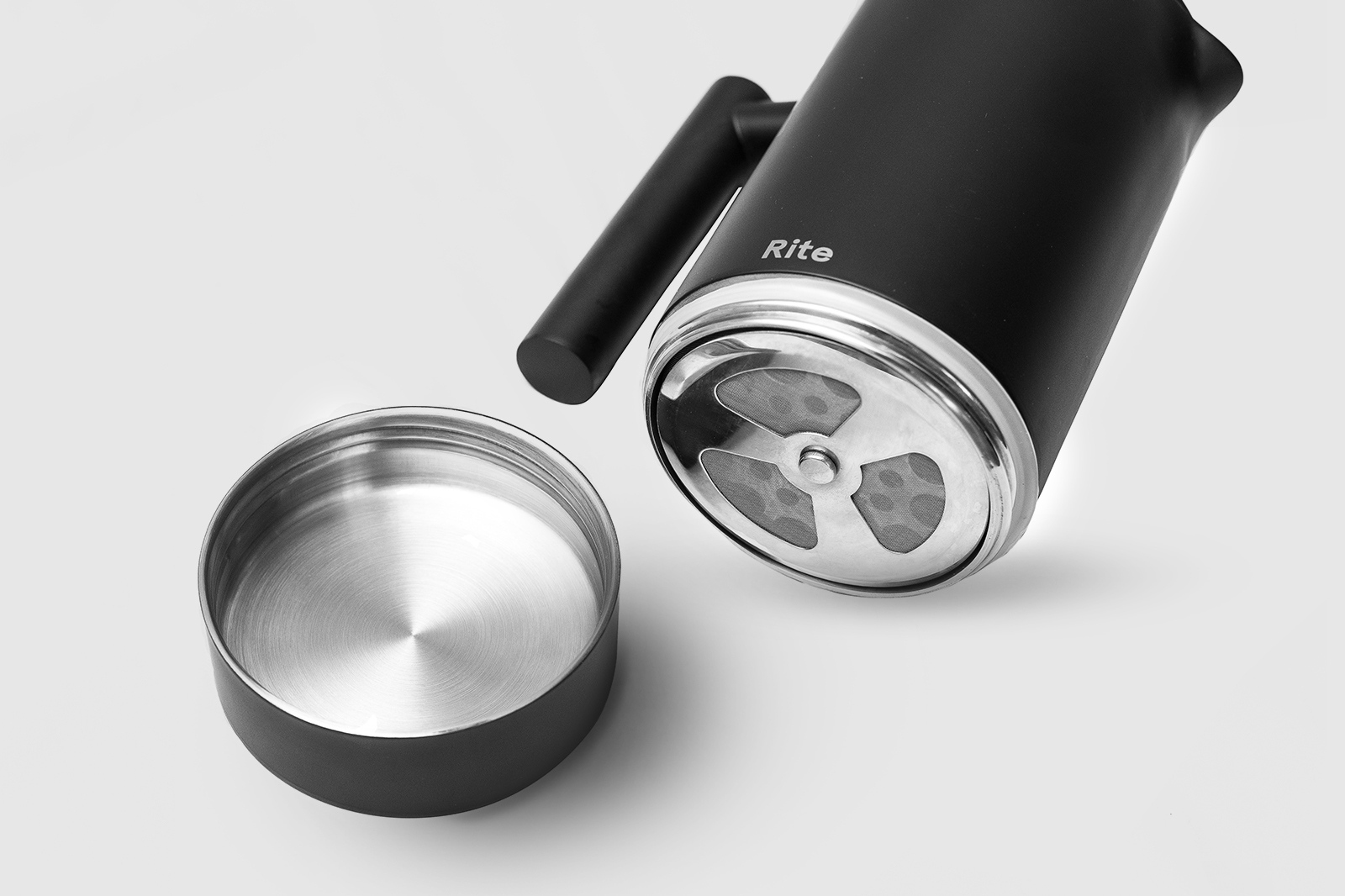 The filter pushes grounds into the removable bottom so you can easily dump the grounds and rinse with minimal effort. The precisely engineered bottom is designed with two start positions allowing you to easily tighten the bottom with only one full turn. The Rite press also features a medical grade silicon seal to ensure the coffee or grounds don’t drip while in use.